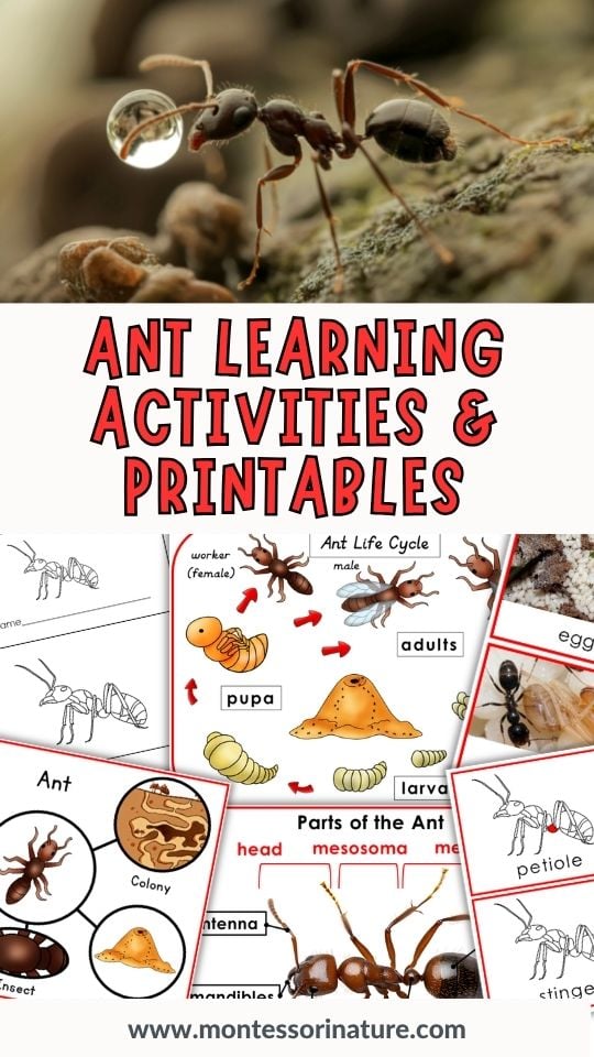 To help you organize these lessons and give children beautiful, accurate materials to work with independently, I created the Ant Life Cycle and Anatomy Printable. This complete resource includes everything you need for a thorough study of ants.