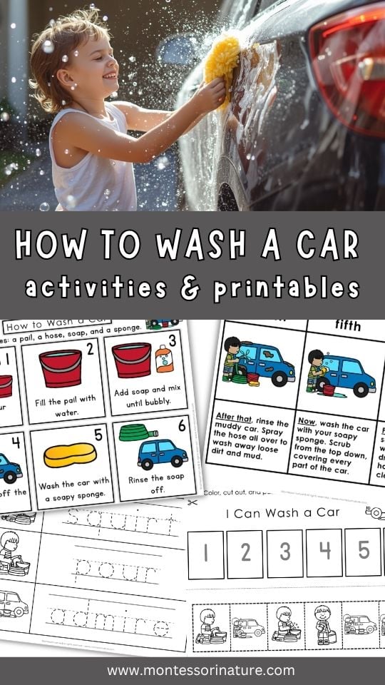 Ready for a fun Spring or Summer activity that gets children learning while they help out? This How to Wash a Car printable provides structured, hands-on activities for teaching car washing routine, sequencing, and responsibility. Designed for Kindergarten through Grade 3, the materials break down the car washing process into clear, child-friendly steps while building fine motor skills and vocabulary. Perfect for Montessori Practical Life (care of environment), outdoor learning, and life skills instruction.