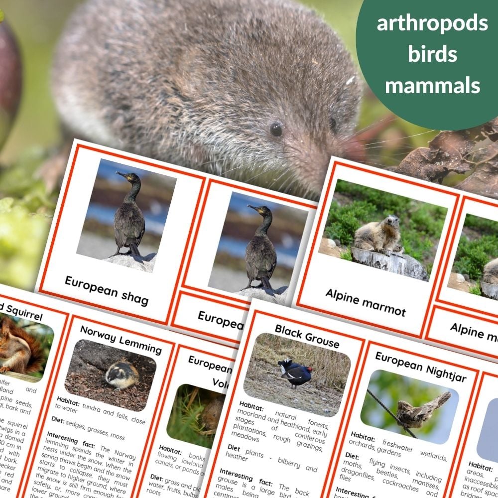* Mammals: European hare, Alpine marmot, red squirrel, Norway lemming, European water vole, European snow vole, brown bear, gray wolf, red fox, European mink, Iberian lynx, wolverine, European bison, Spanish ibex, roe deer