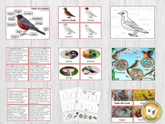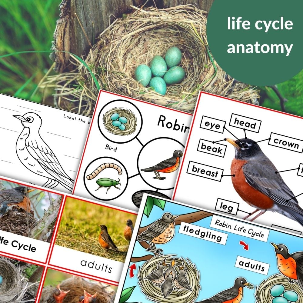 This comprehensive set includes life cycle diagrams, worksheets, 3-part cards, information cards with fill-in-the-blank options, robin characteristics posters, parts of a robin printables, and extended language activities.