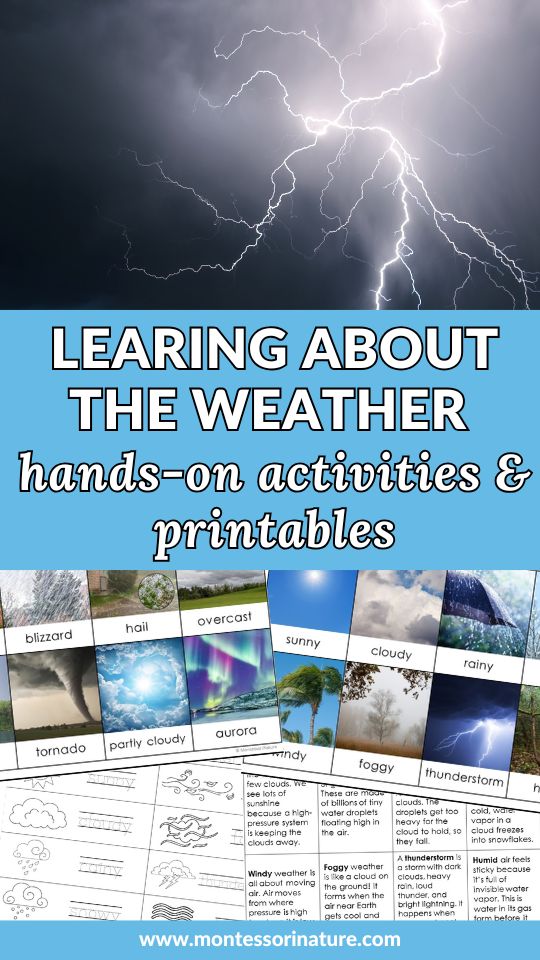 This Types of Weather Montessori-inspired printable is designed for kindergarten and elementary learners (ages 5-9) and provides hands-on materials to explore 16 distinct weather events, from sunny and cloudy to hail and blizzards.